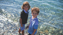 Лонгслив с качулка за момче с имитация на многослойност и принт син Gulliver