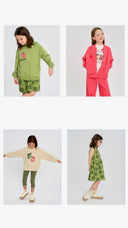 Кроп топ тениска за момиче зелена оверсайз с принт Button Blue