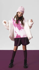 Лонгслив за момиче свободен модел с асиметричен принт, млечнобял Gulliver