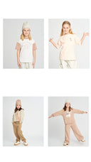 Тениска за момиче бежова с къс ръкав и принт лама Button Blue