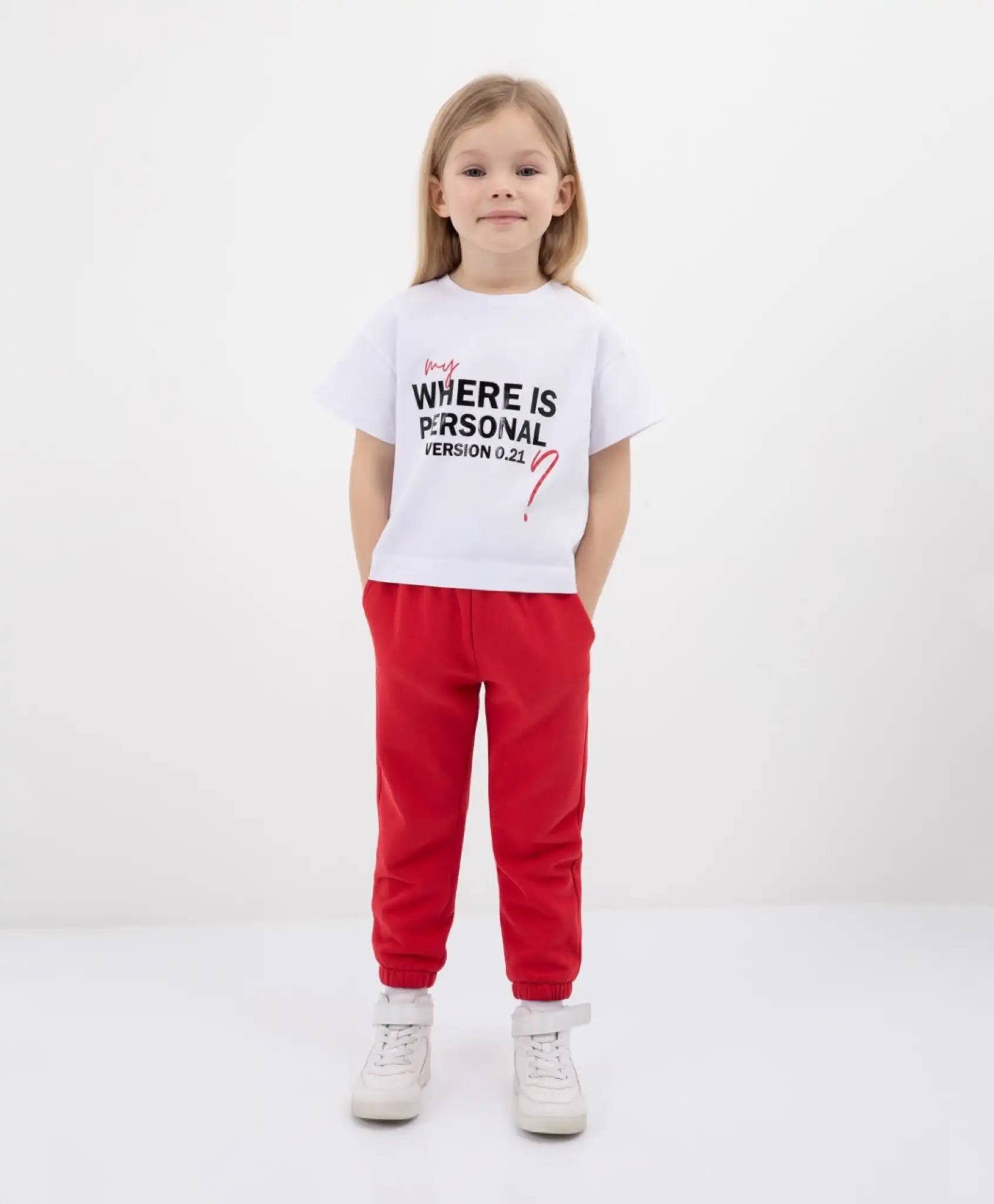 Трикотажните панталони са включени в ТОП 5 на най-търсените продукти на функционалния детски гардероб. Модерен силует, който създава мека спокойна визия, удобство, комфорт, големи възможности за приложение, правят плетените панталони незаменими. Червените панталони, разбира се, няма да бъдат изключение. Те ще привлекат вниманието с малки, но значими нюанси: спуснати задни джобове и правоъгълна жакардова лепенка с обемни гумени букви.\n