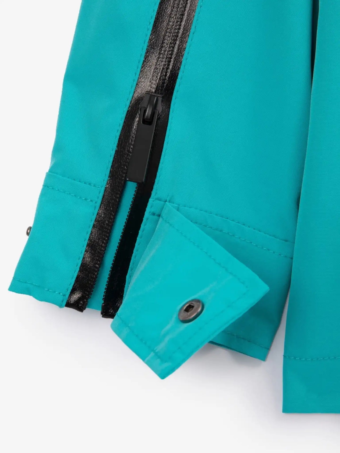 Тюркоазена ветровка от водоустойчив макинтош - ярък акцент в пролетната визия! Изработена в най-добрите традиции на Gulliver, вятърната жилетка се характеризира с ултрамодерен дизайн и обмислени функционални детайли. Права свободна форма с паднало рамо, цветен контраст на основния материал и обшивката, брутално изляти ципове на централната катарама, ръкавите и джобовете, подплата с изразителна екзотична шарка, шеврон - всичко работи за образа на стилно, енергично, самоуверено момче. С всякакви къси панталони, дънки, джогингс, ветровка ще изглежда остро, интересно, привлекателно. В дизайна на модела е използван светлоотразителен принт, допринасящ за безопасността на момчето в тъмното.