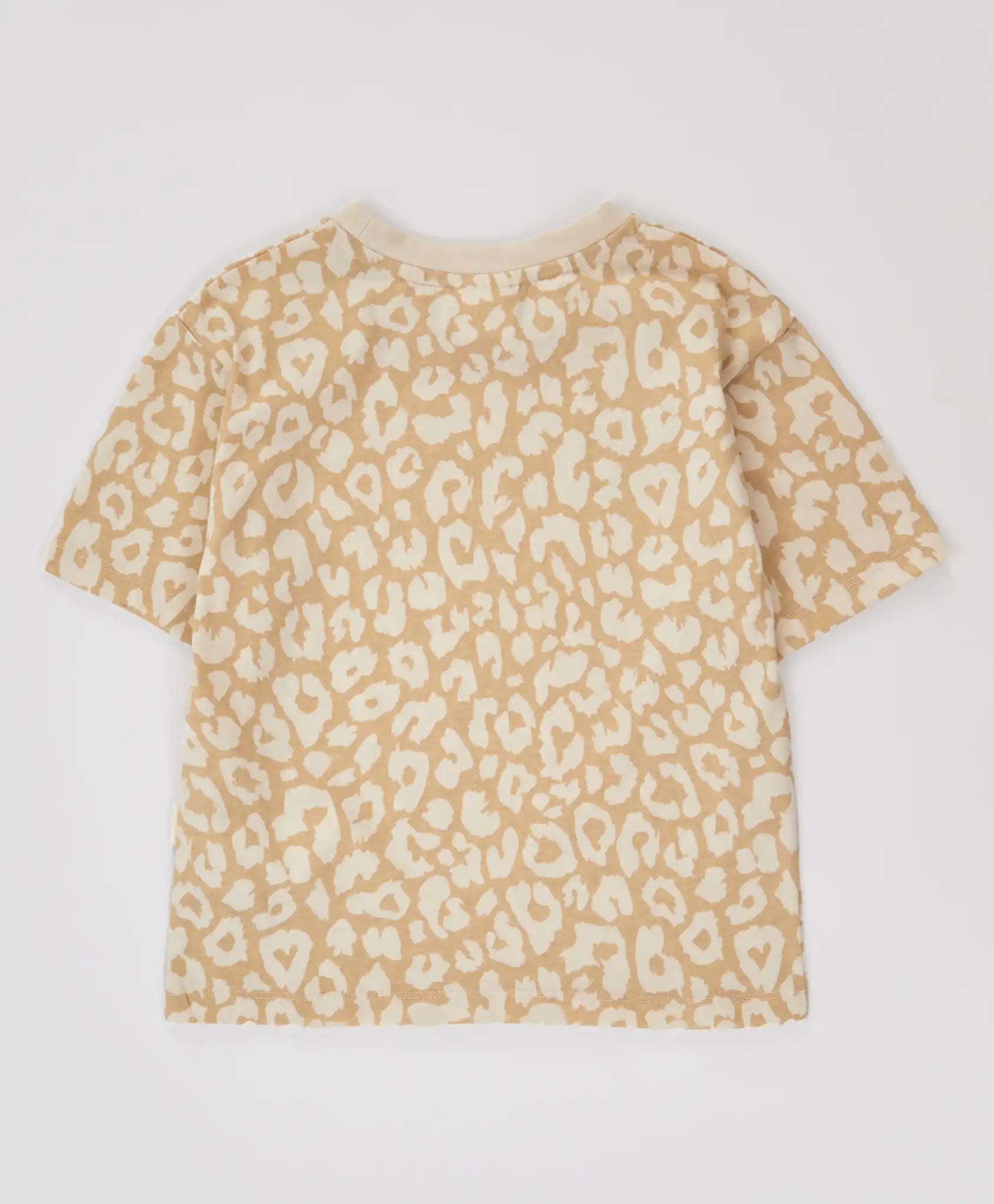 Тениска с къс ръкав и леопардов принт бежова за момиче Button Blue