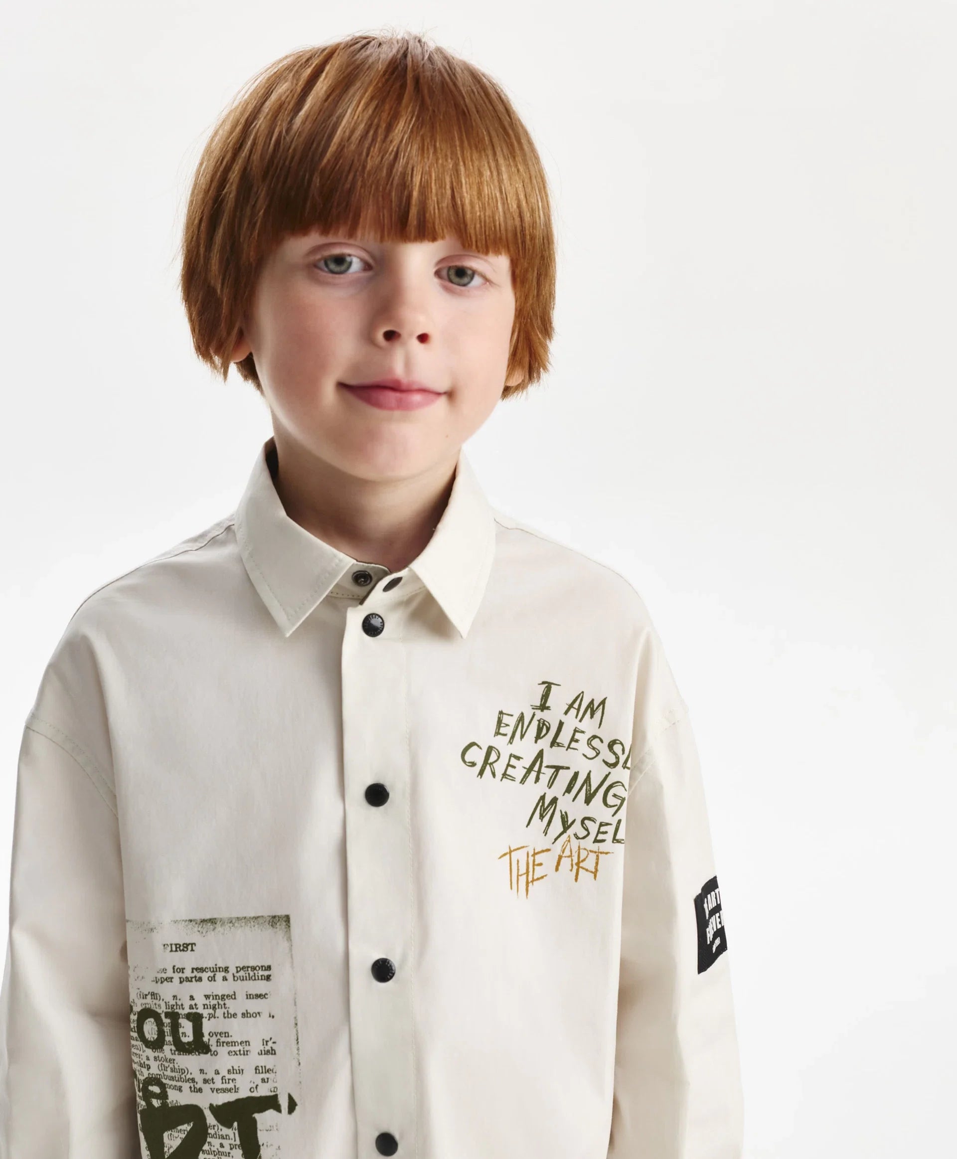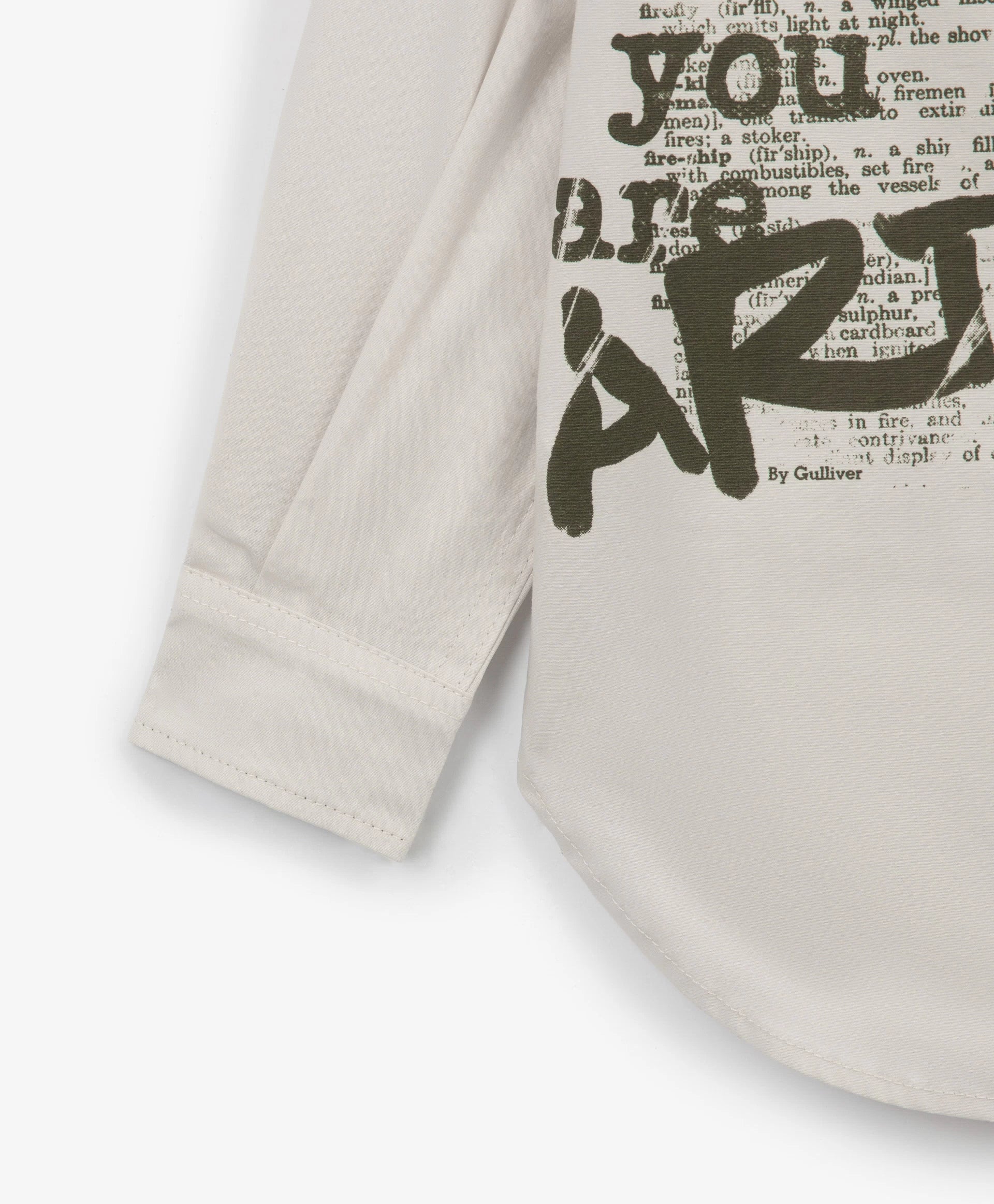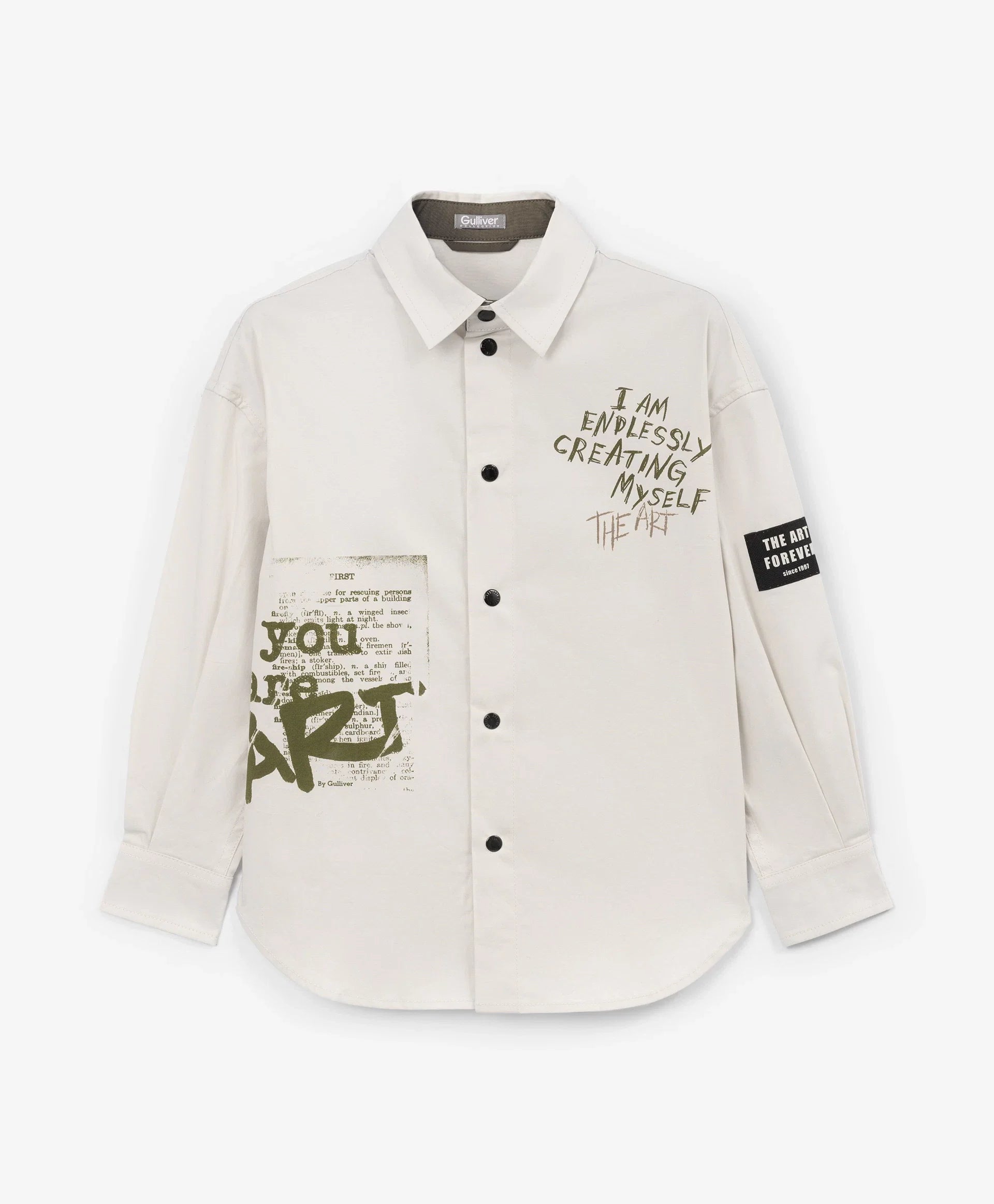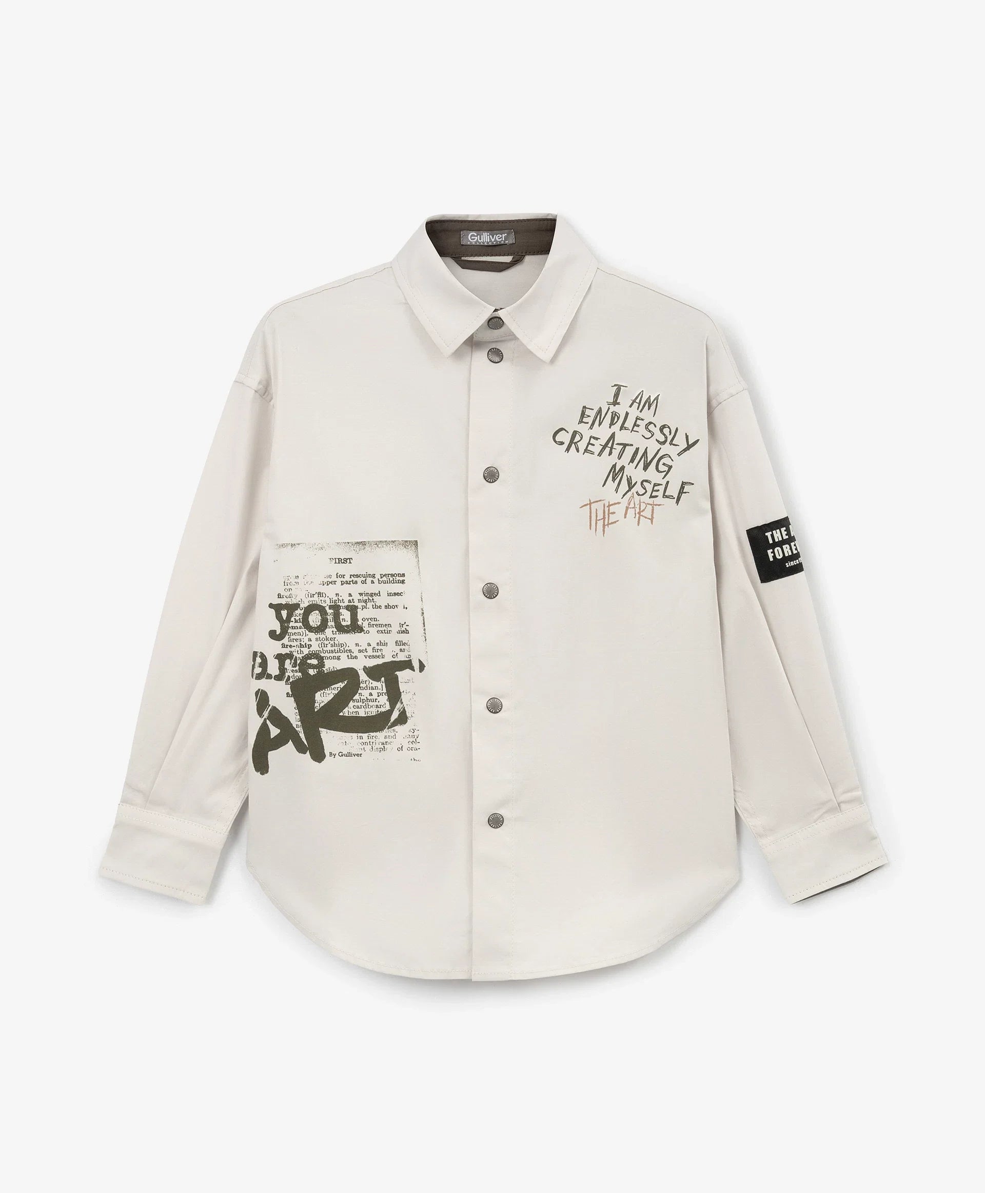Риза с дълъг ръкав за момче прав силует, сива с принт Gulliver