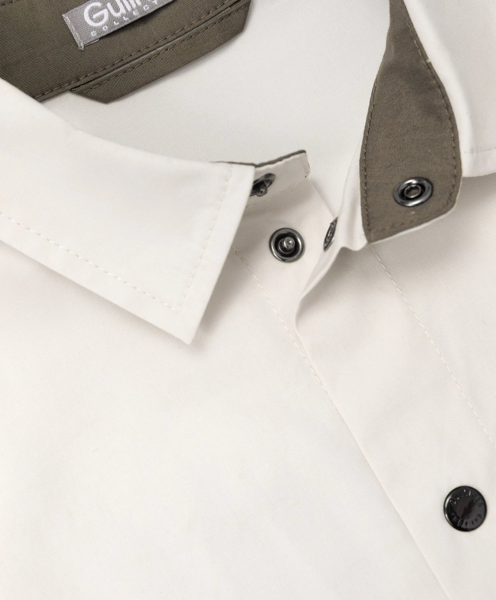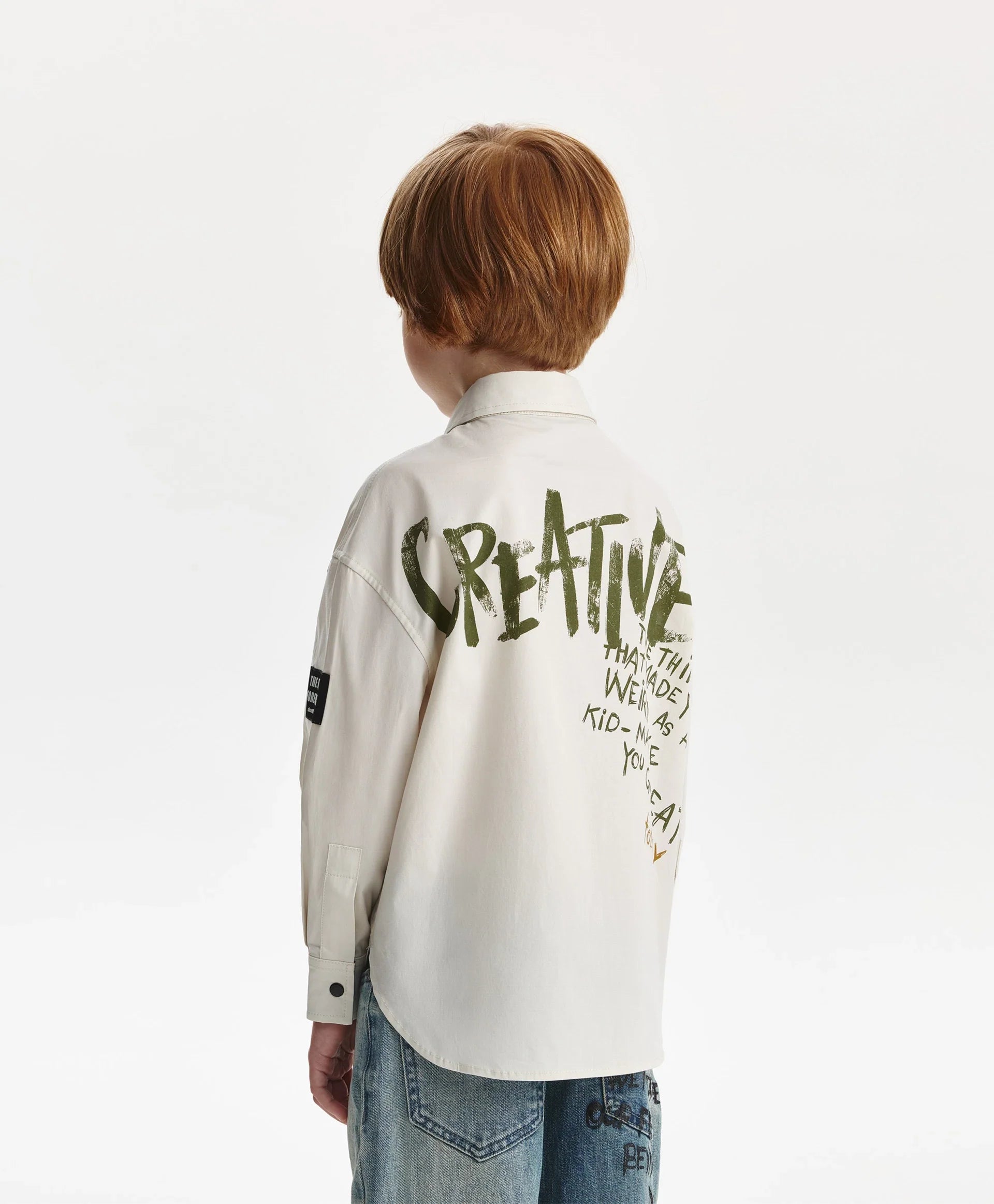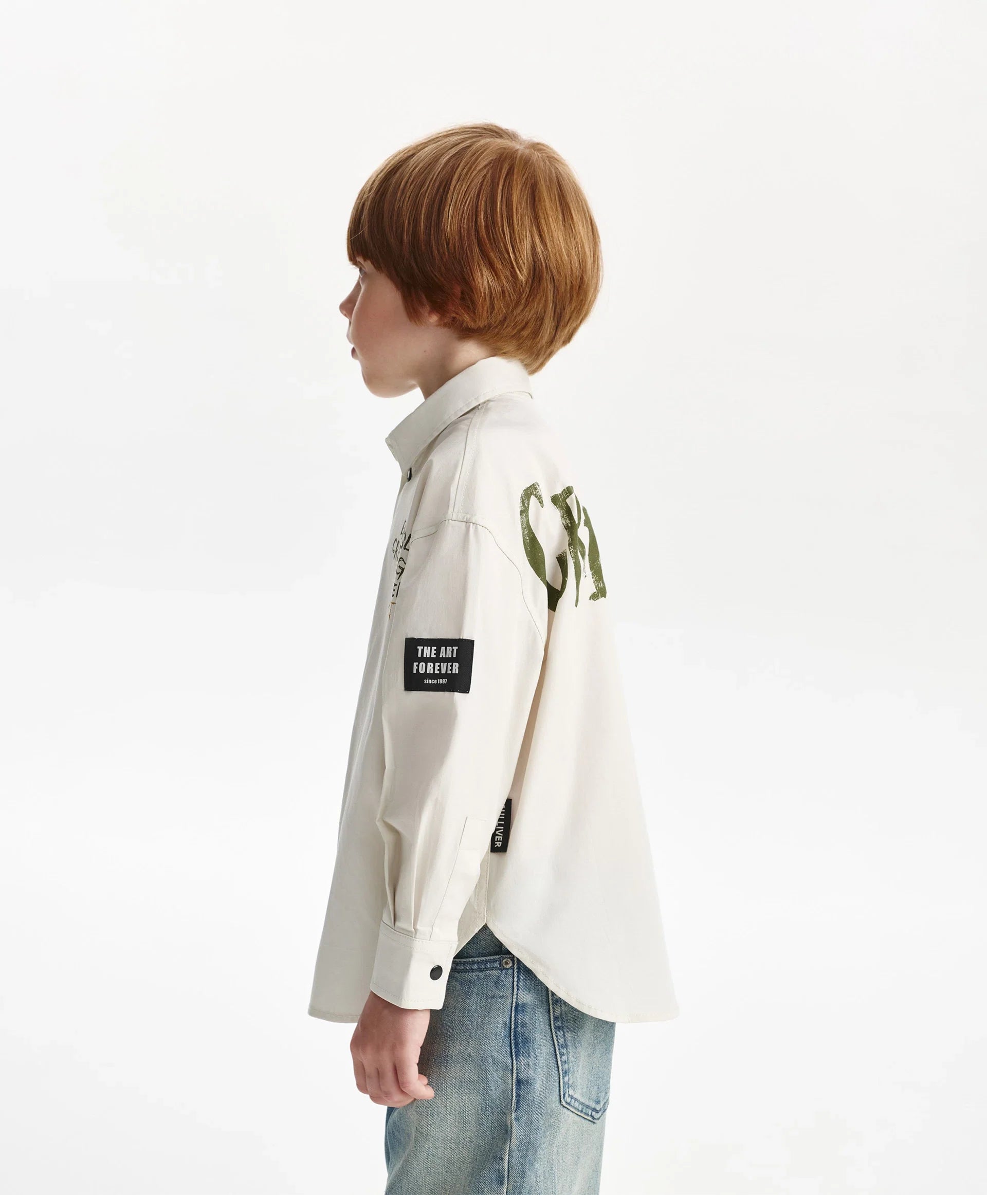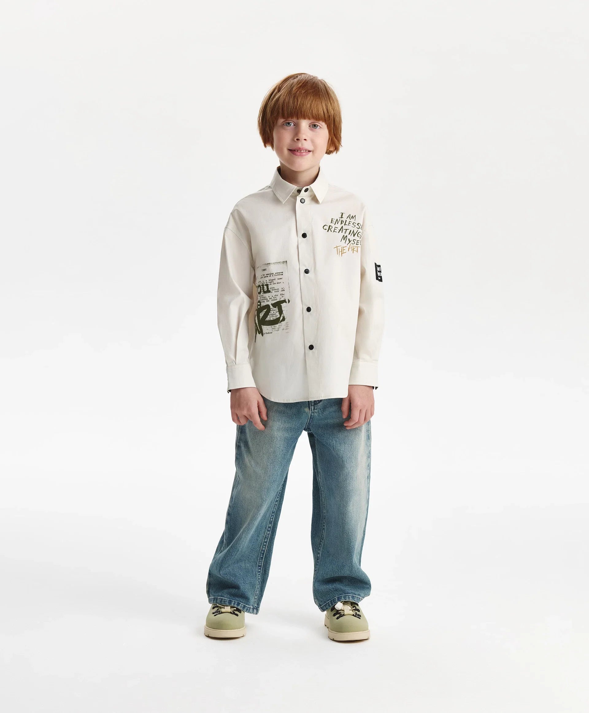 Риза с дълъг ръкав за момче прав силует, сива с принт Gulliver