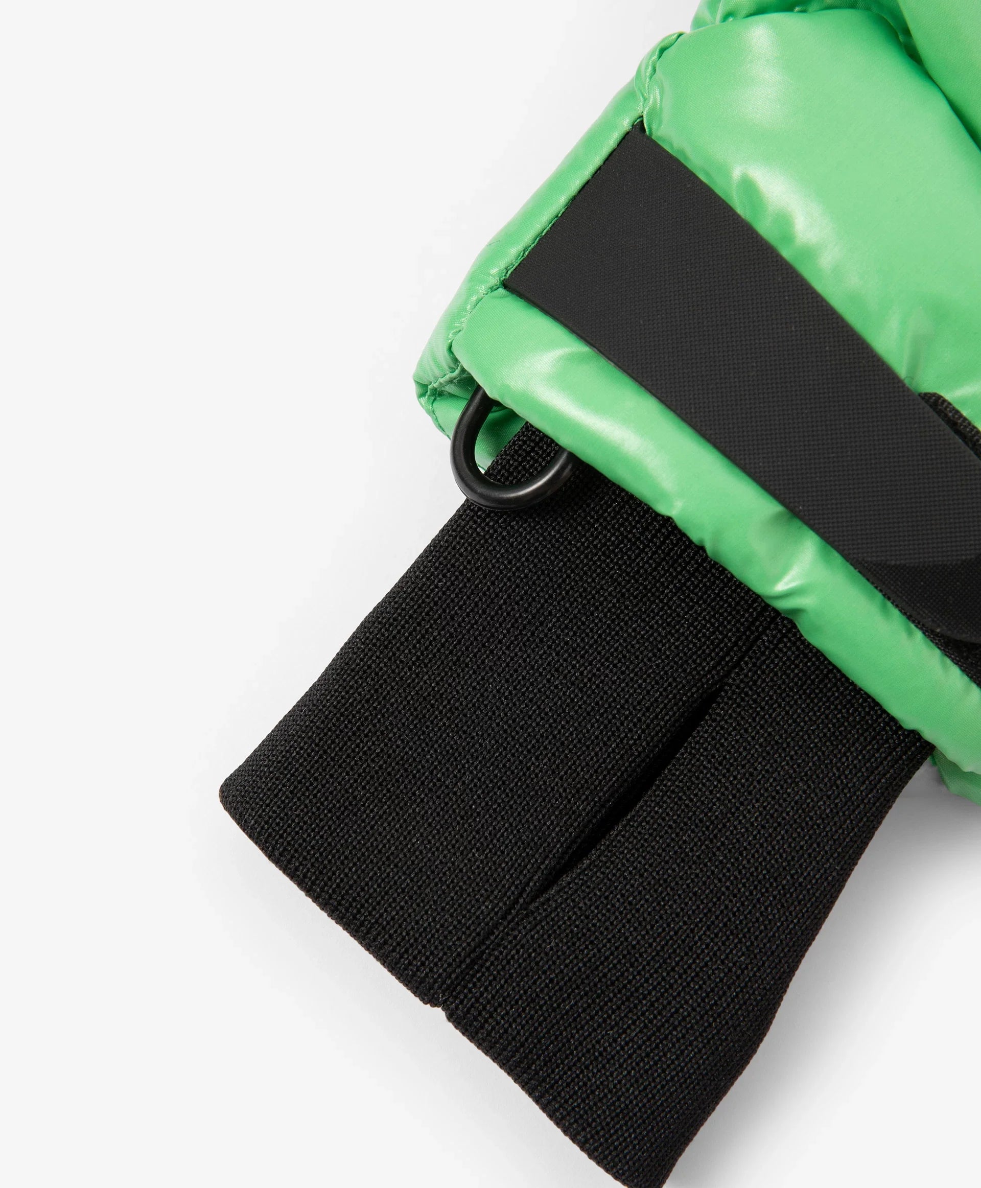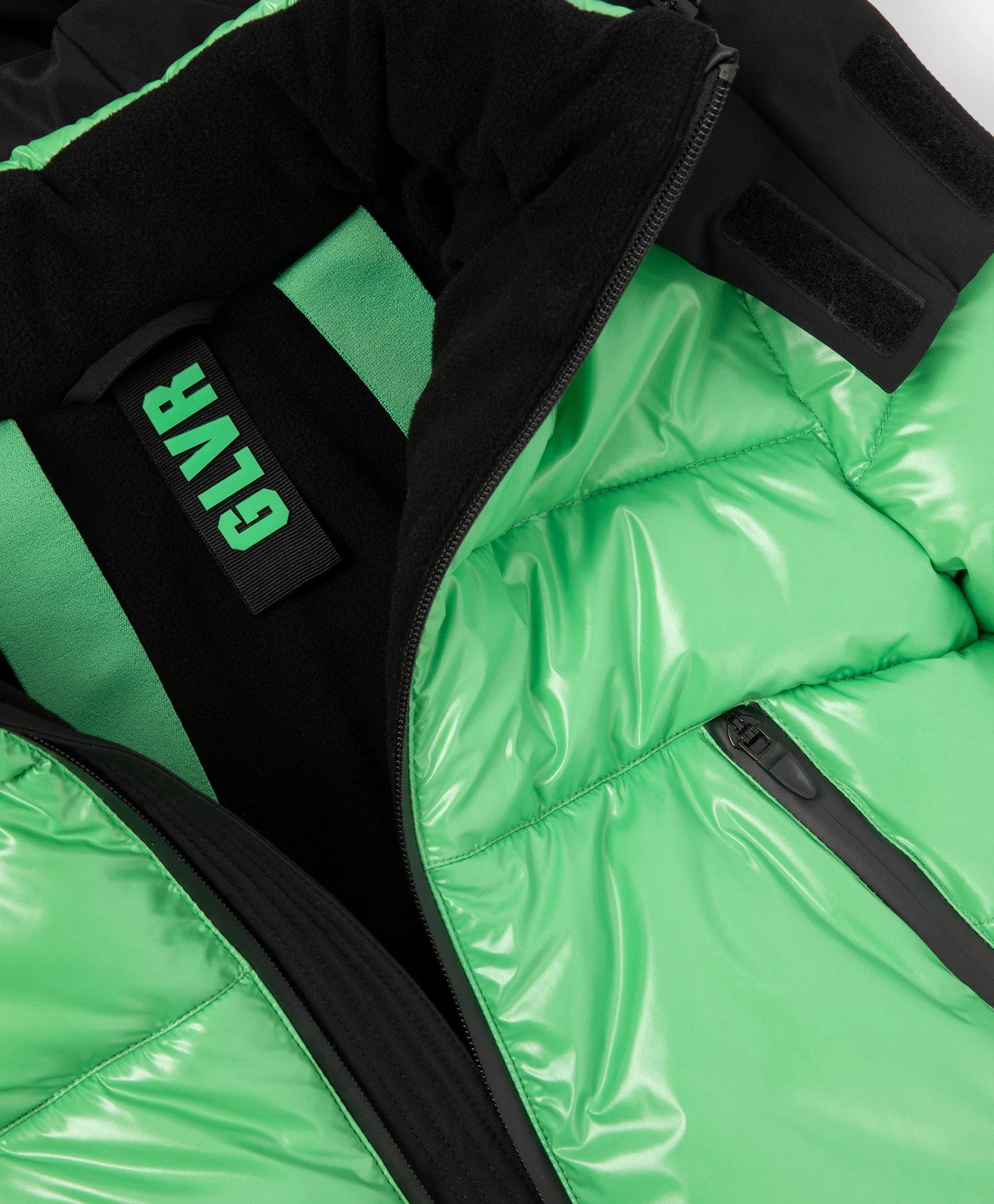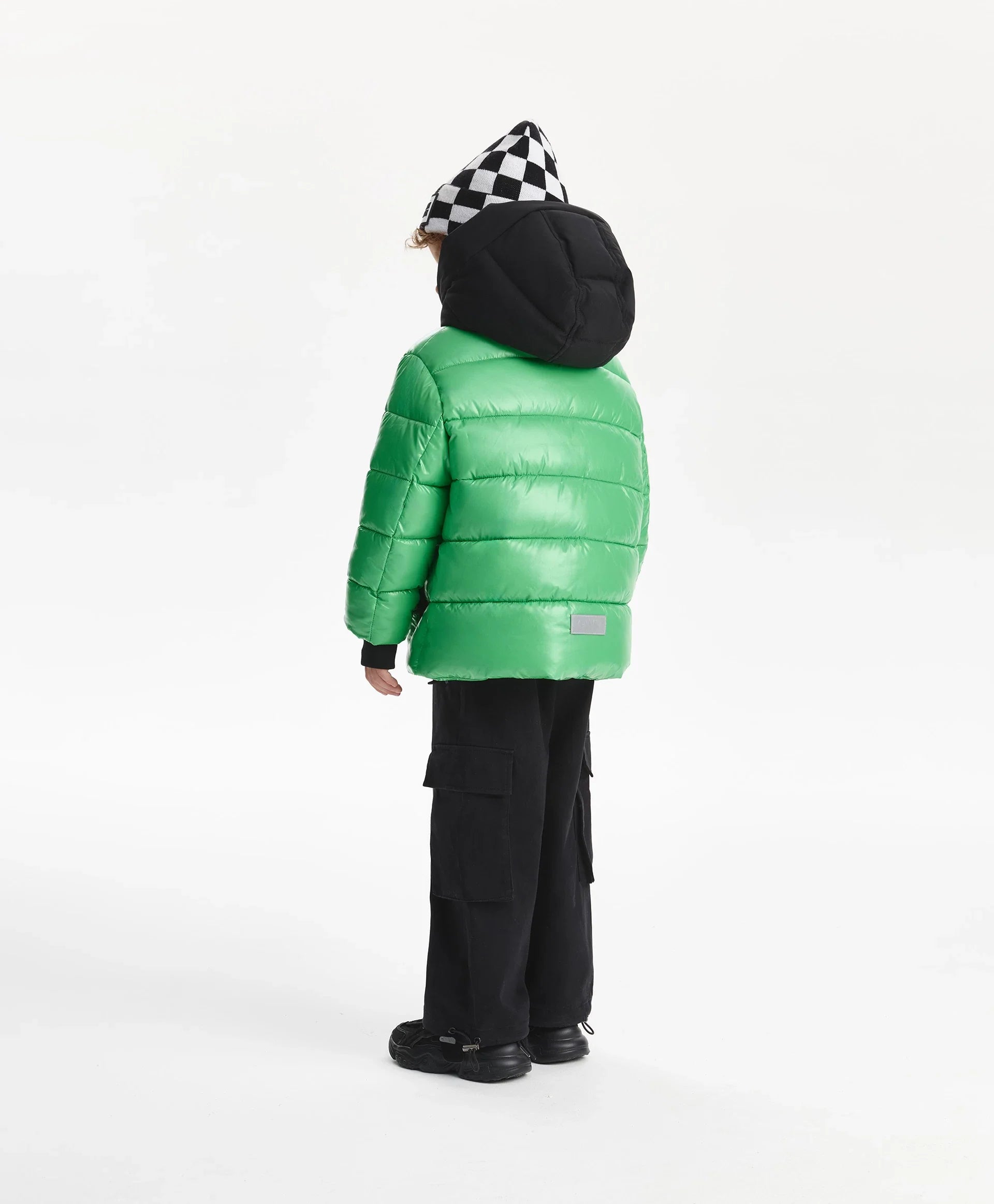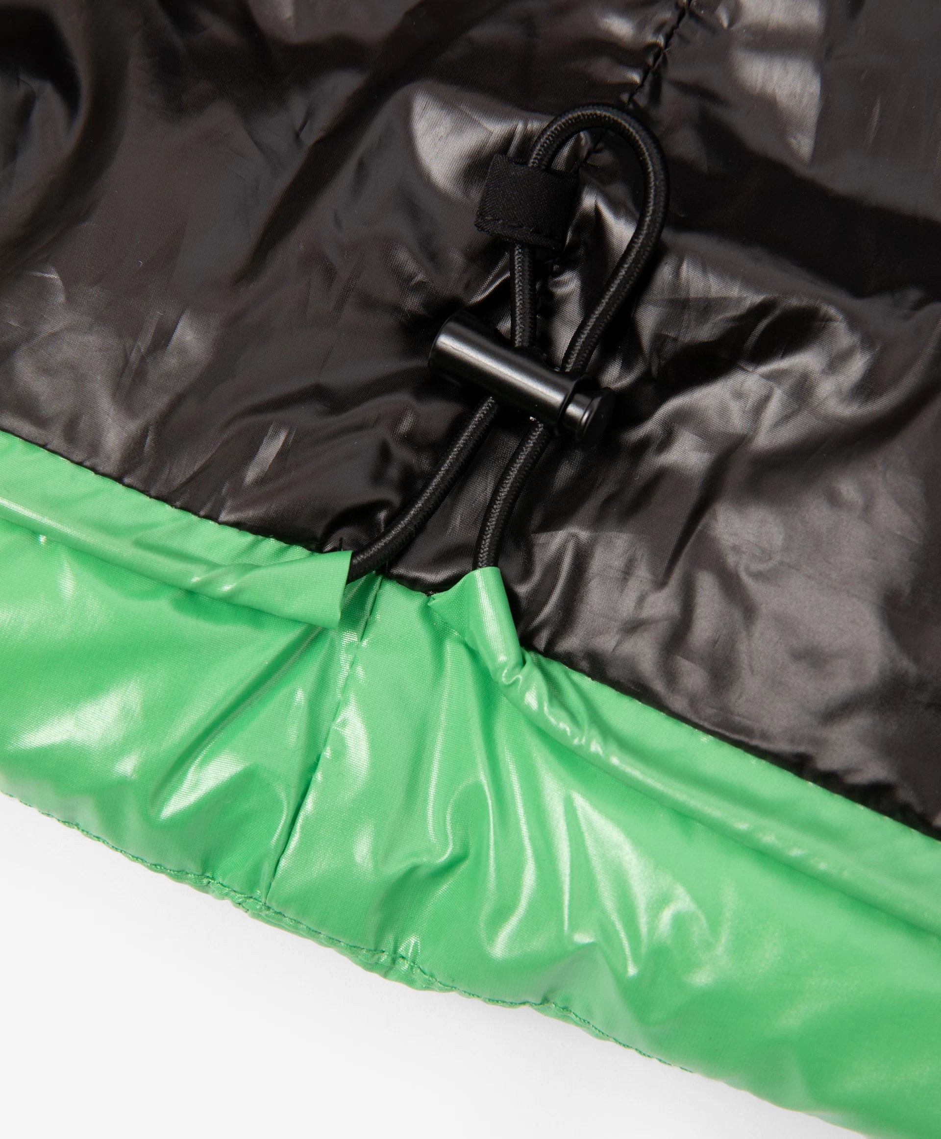 Стяганото зимно яке в наситено зелено е ярък акцент в зимната визия! Якето със синтетичен пух е изработено от влагоустойчива промазка с модерен мокър блясък и мека поларена подплата, което го прави практично и издръжливо дори при сурови зимни условия. Дизайнът е вдъхновен от спортния стил: колорблок ефекти, комбинации от текстури, контрастни детайли и аксесоари превръщат класическата кройка в интересен, модерен модел, който мотивира към движение! Допълнителни функционални елементи: дълбок качул с вътрешни връзки и висока яка с велкро, рипсени маншети с отвори за палци, велкро ленти на ръкавите, вътрешна връзка по долния край, ляти влагоустойчиви ципове на централното закопчаване и джобовете. Якето има вътрешни презрамки, които позволяват носене на гърба като раница. На ръкавите са разположени шрифтов принт и минималистична гумена нашивка, както и джоб с цип за ски-пас. Светлоотразителната нашивка на гърба осигурява безопасност в тъмното.