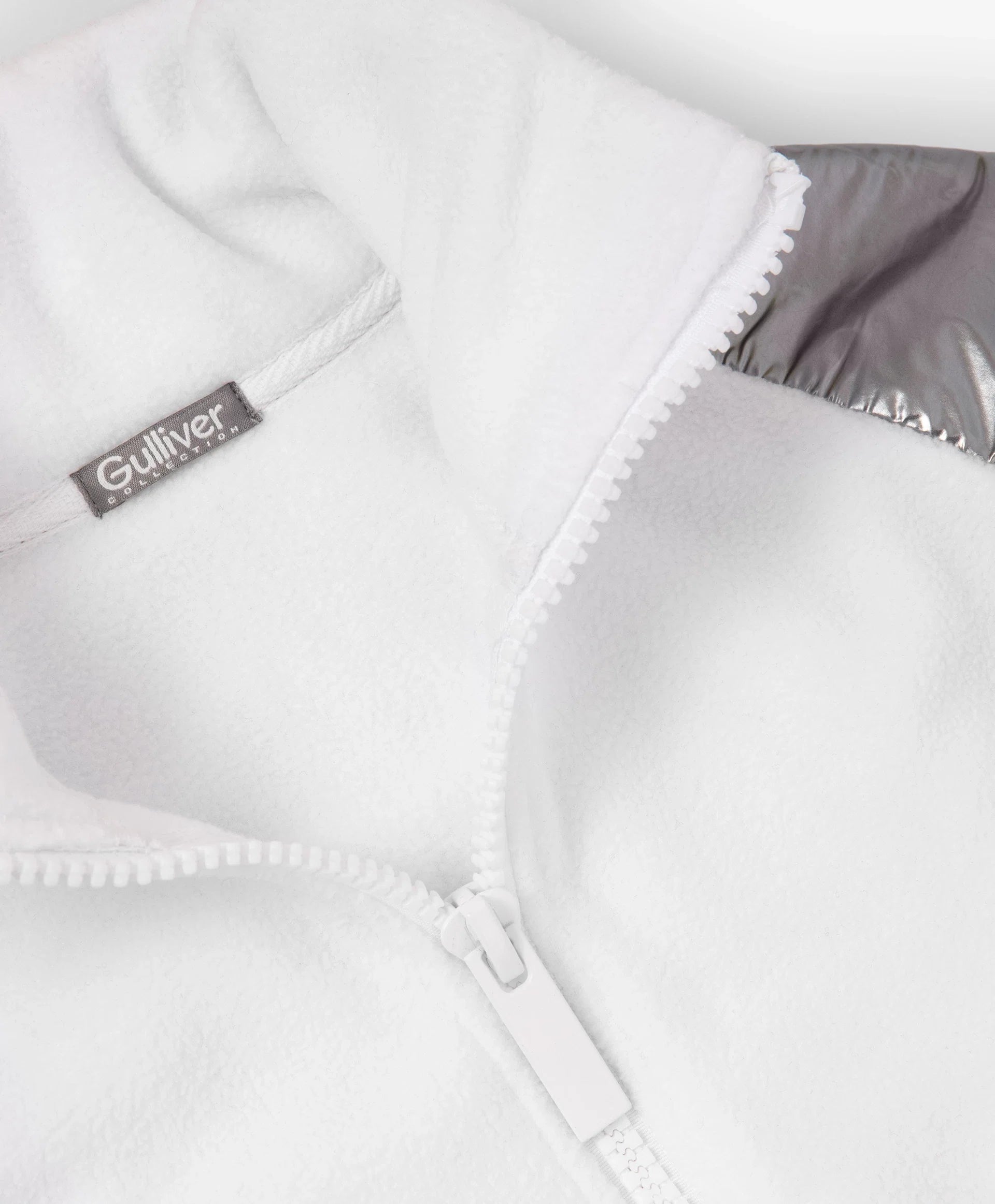 Разкопчаваща се суичър-блуза за момиче от полар със сребристи кантове, бяла Gulliver