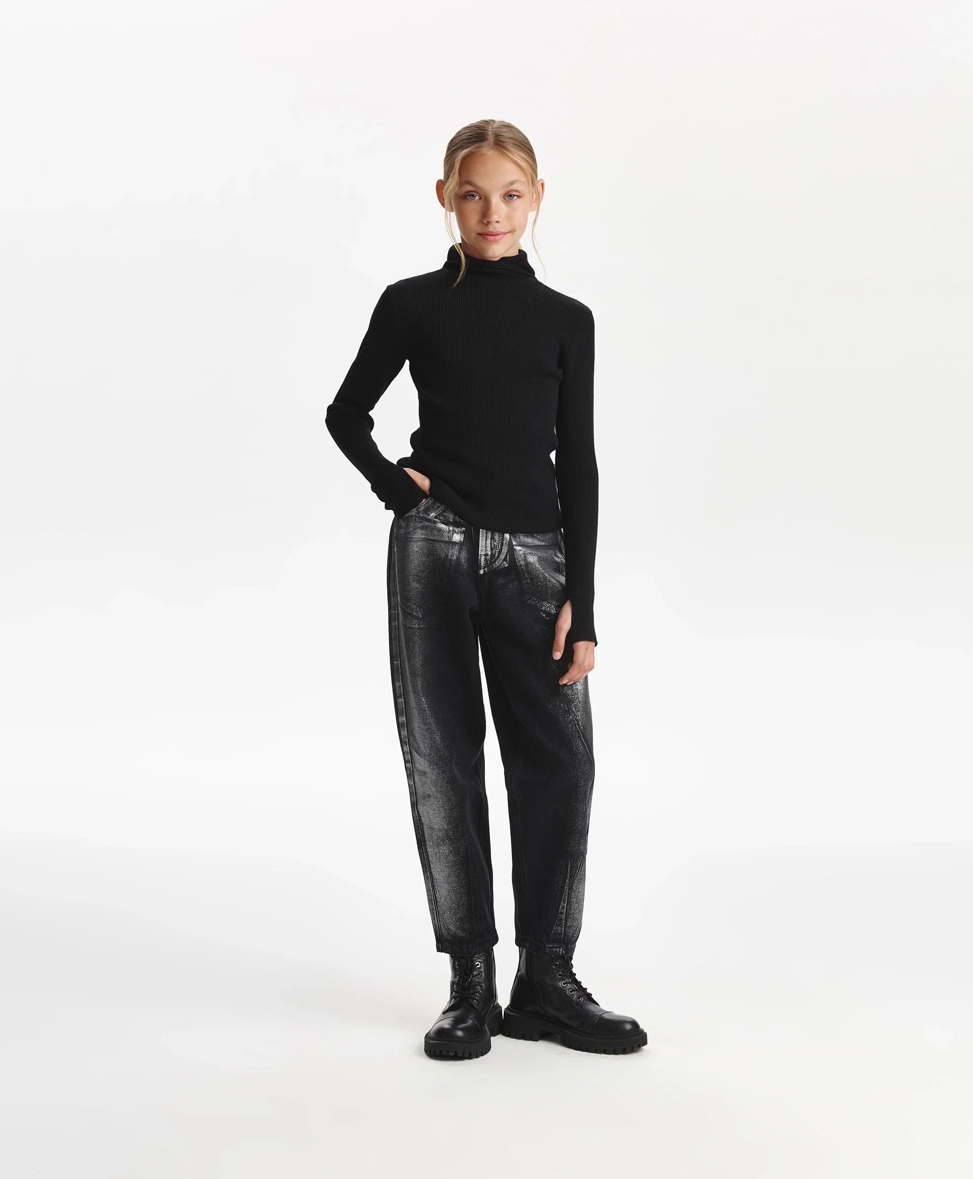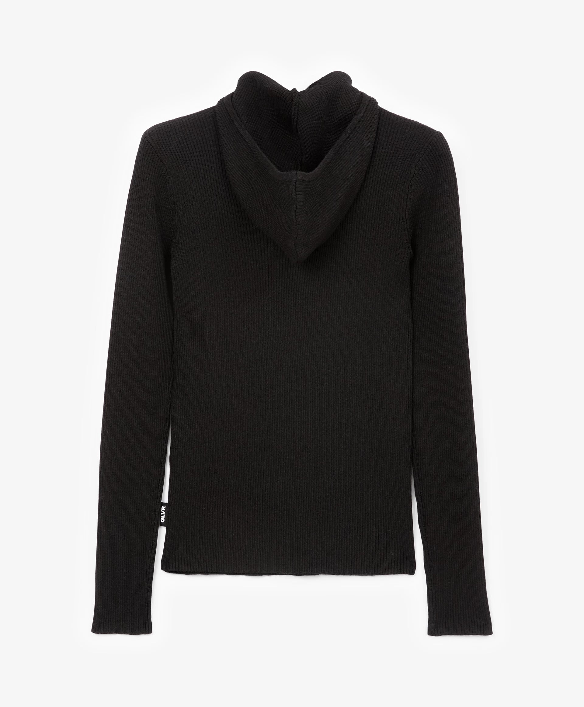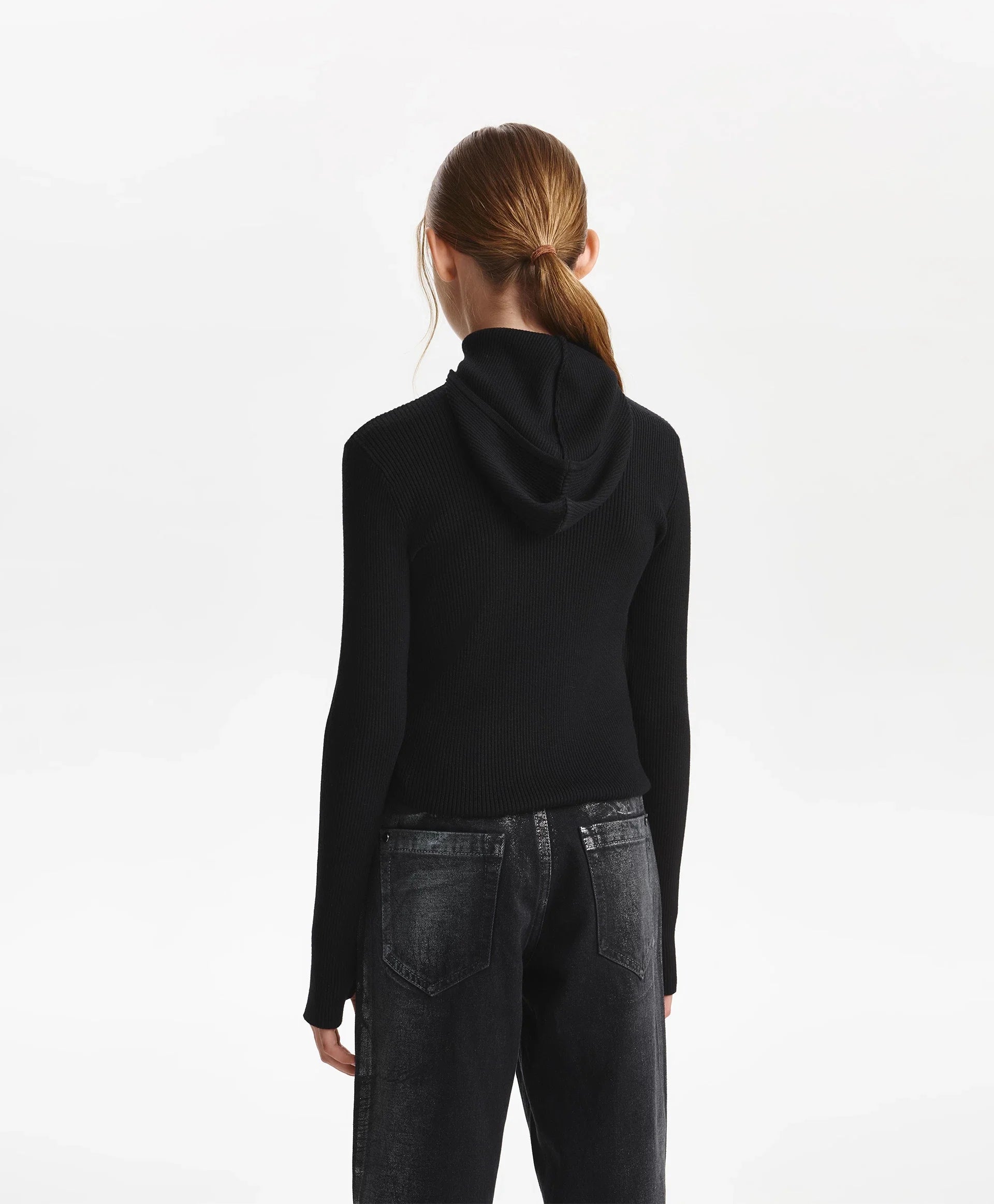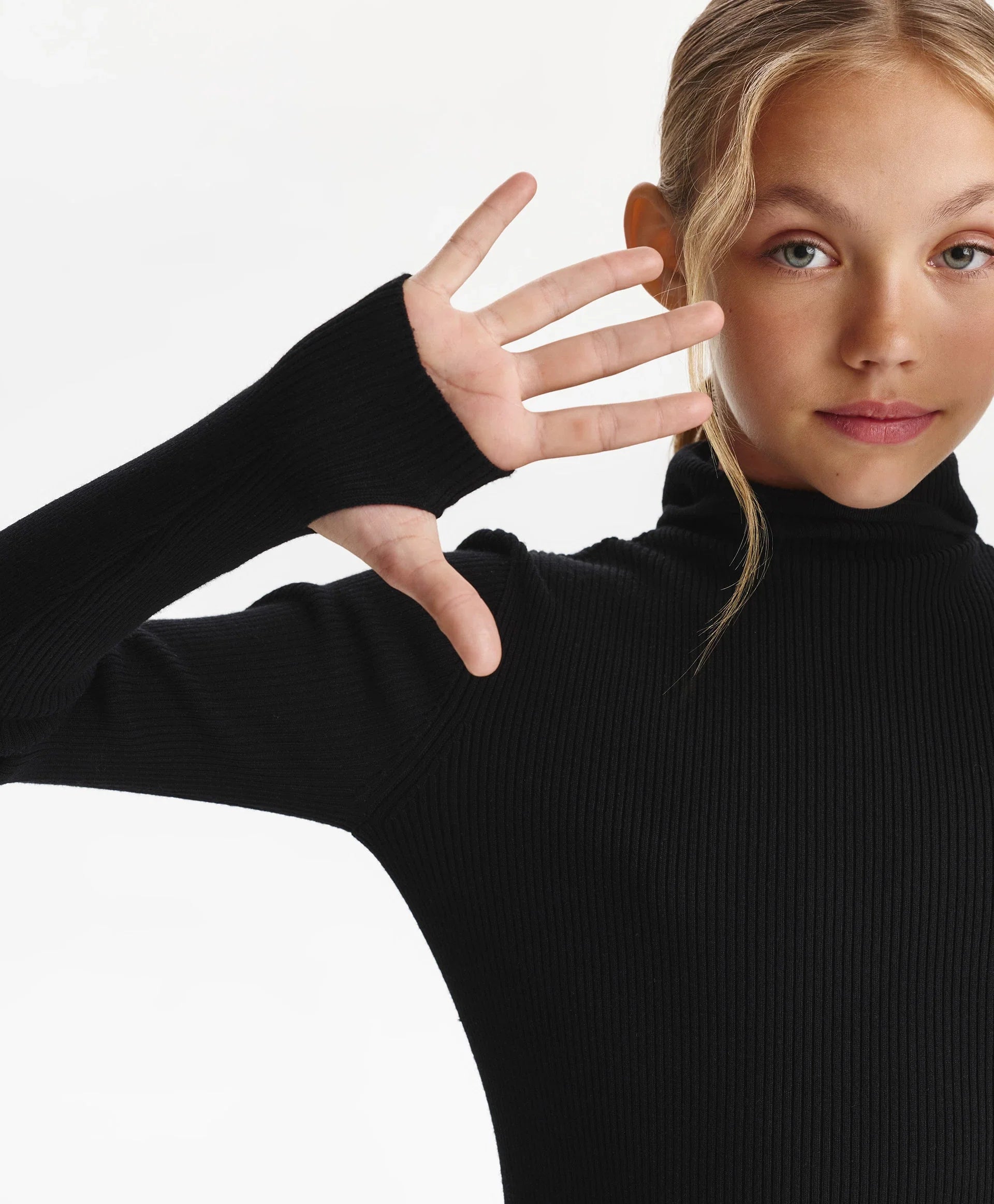 Плетена водолазка с качулка за момиче полуприлепнал силует, черна Gulliver