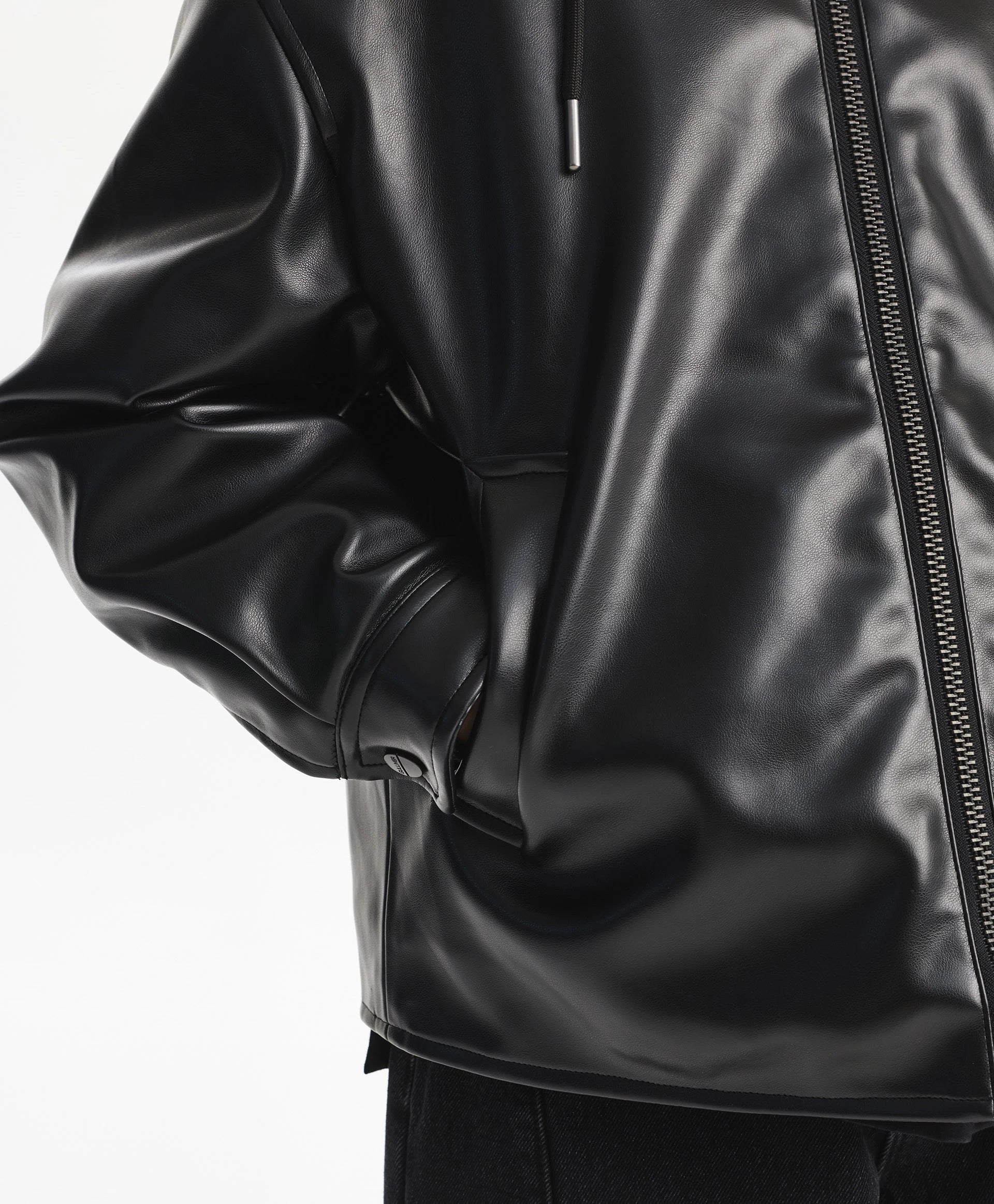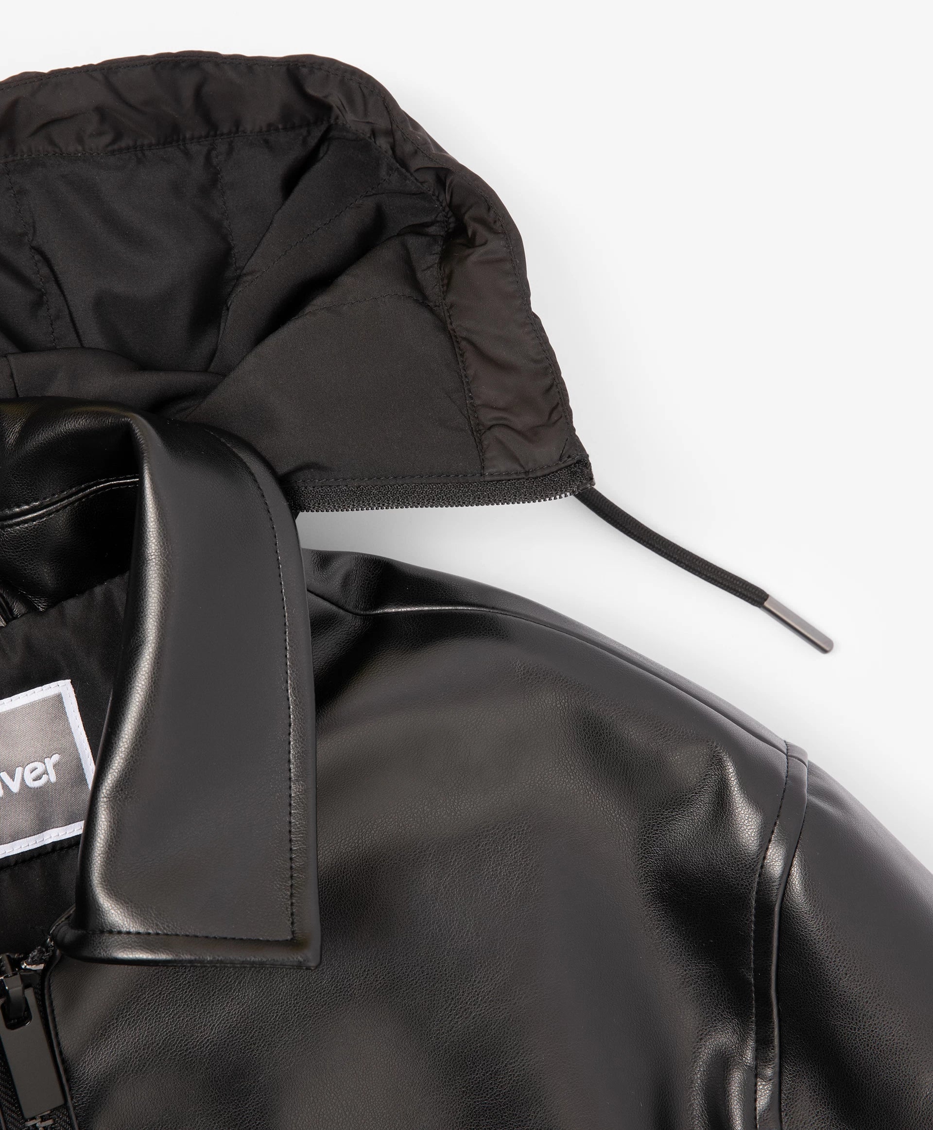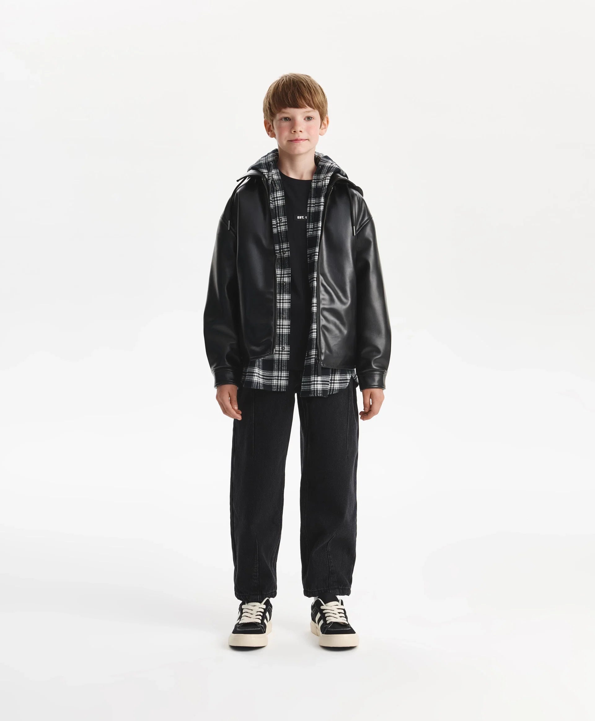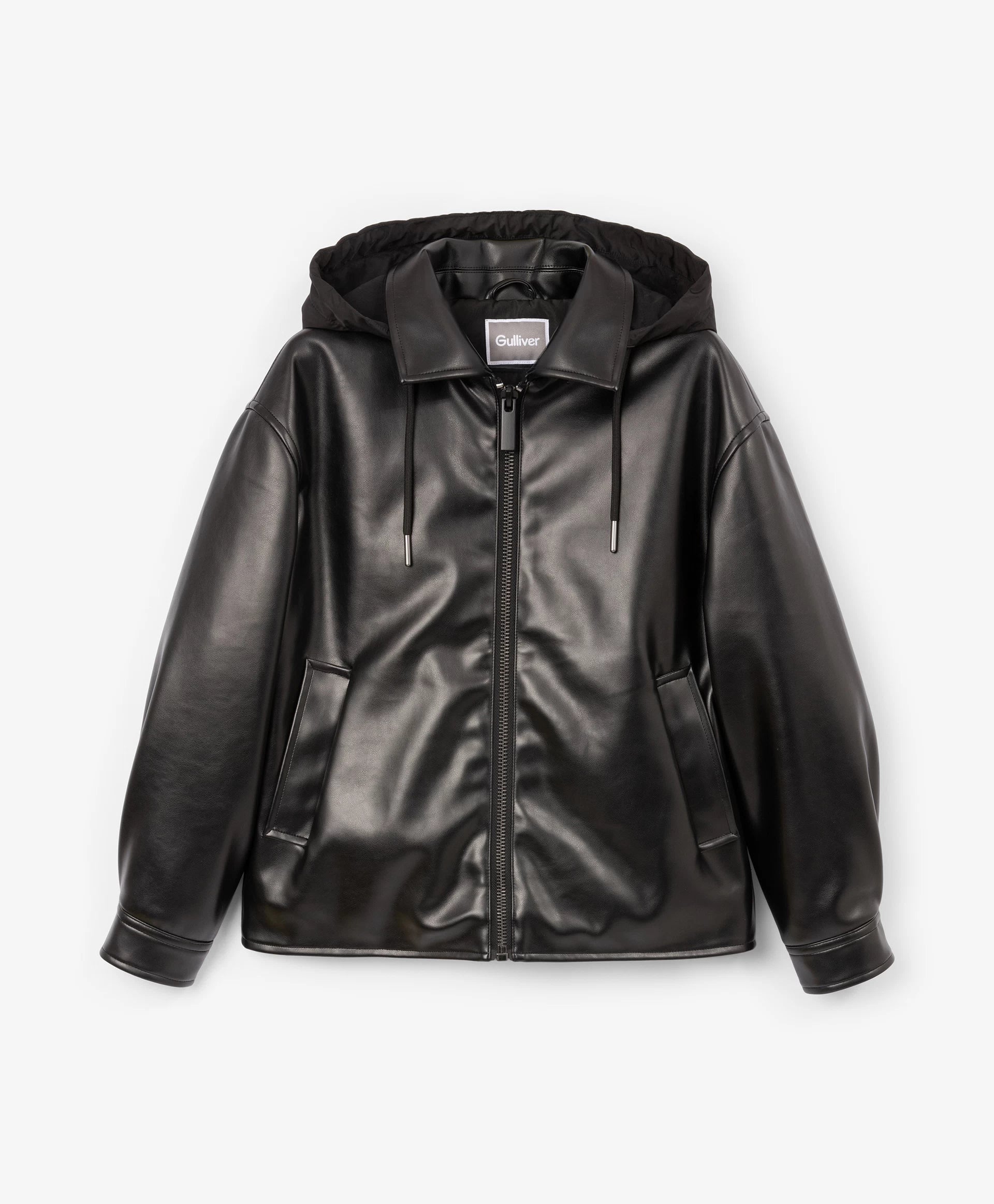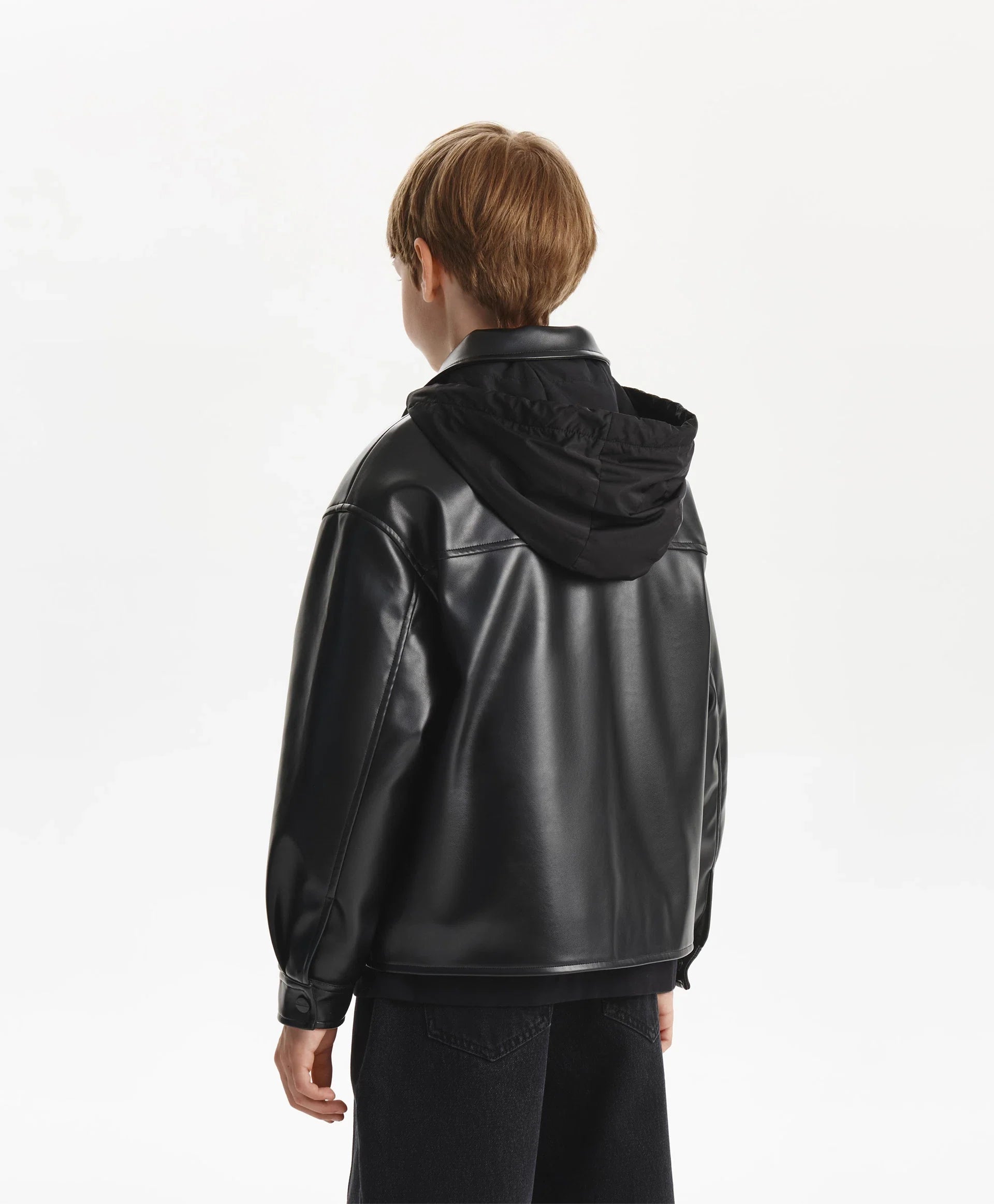 Черното яке със свободна комфортна кройка от еко кожа на тънък синтепон ще добави динамика и енергия в есенната визия на момчето. Минималистичният дизайн го прави стилно, бунтарско и отразява вкуса на тийнейджъра. Свалящата се промазана качулка с връзки допълва яката и създава интересна игра на текстури, като повишава функционалността. Листовидните джобове и маншетите с копчета осигуряват удобство. Закопчава се с цип.