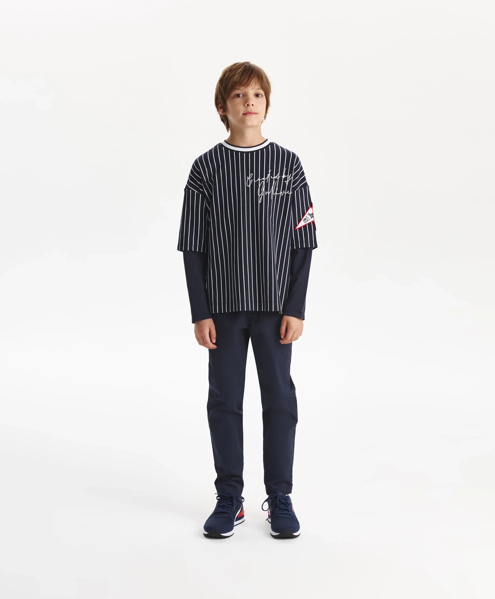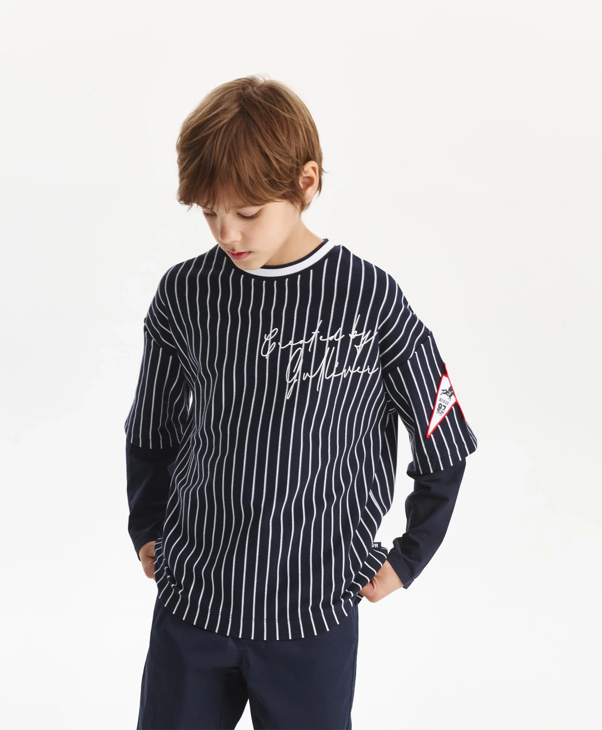 Лонгслив за момче оувърсайз силует, син на райе Gulliver