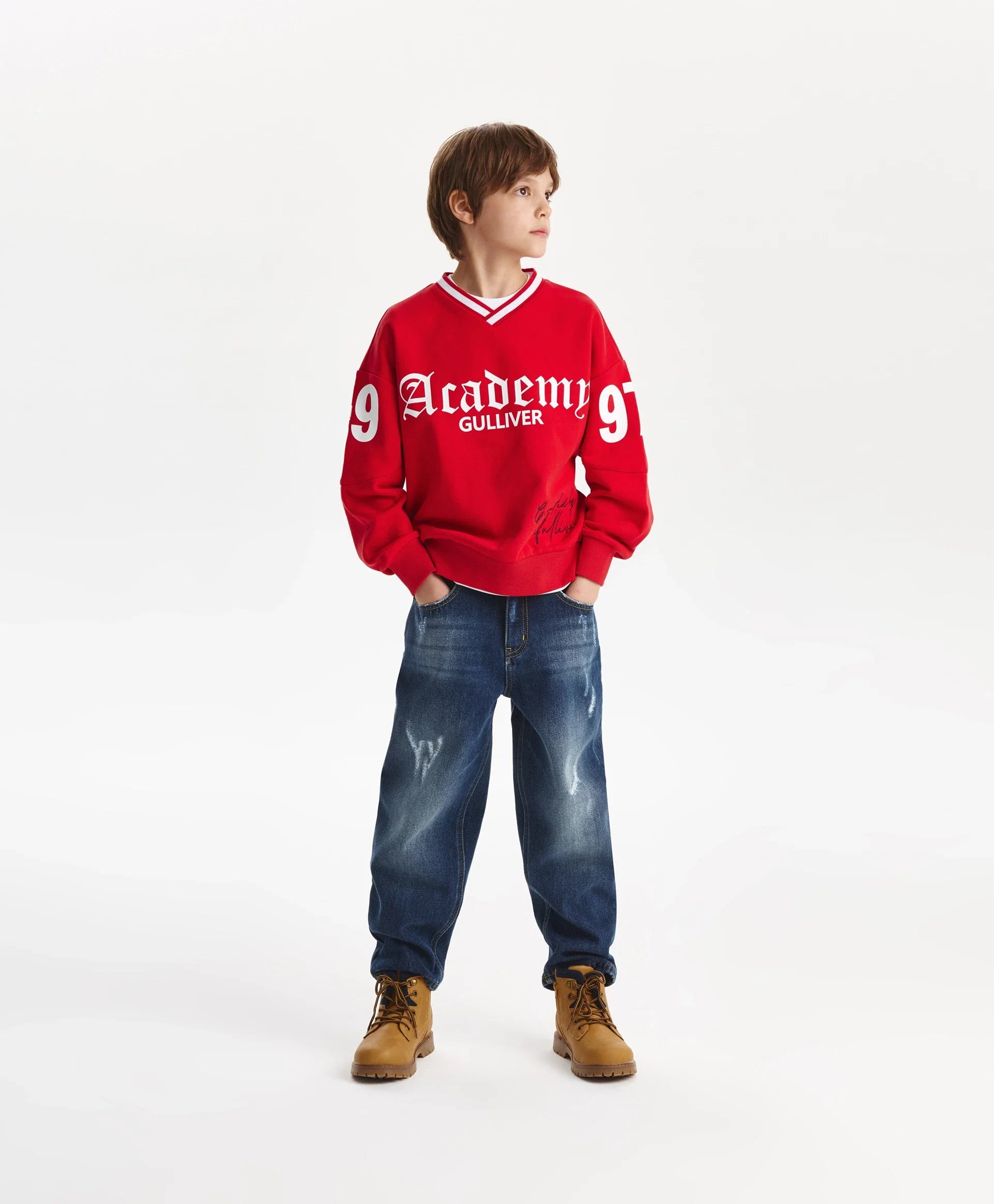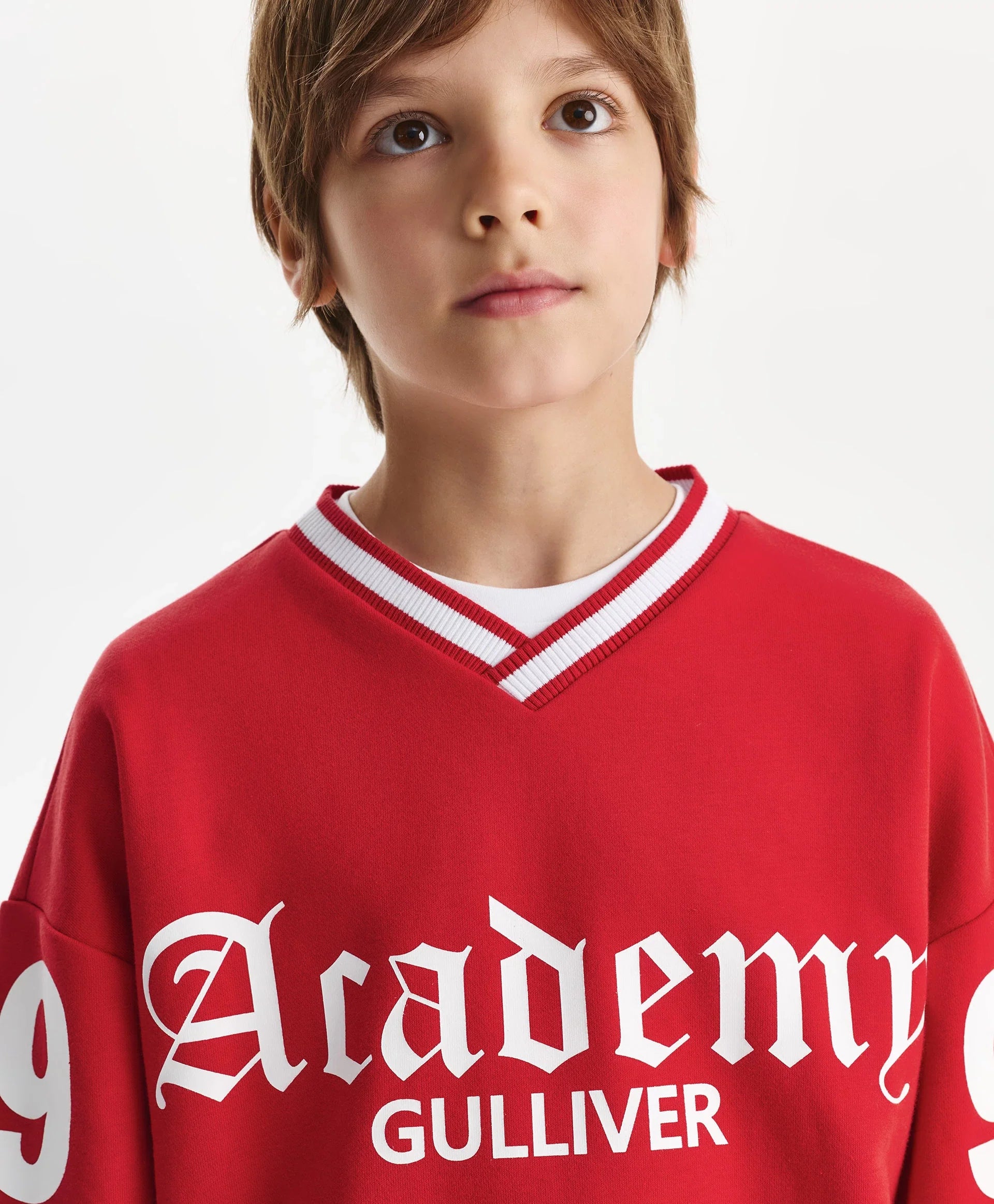 Суитшърт за момче с V-образно деколте, червен Gulliver