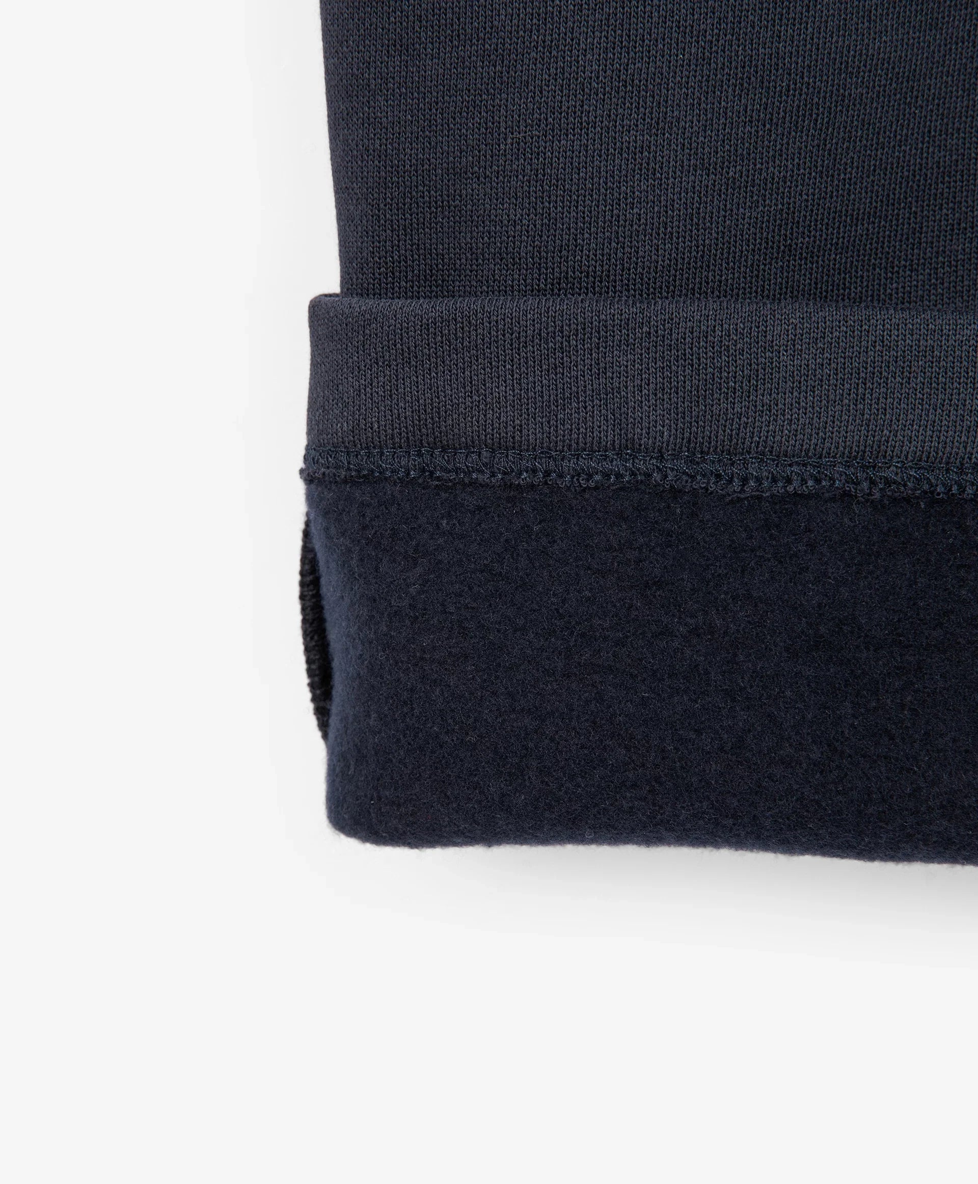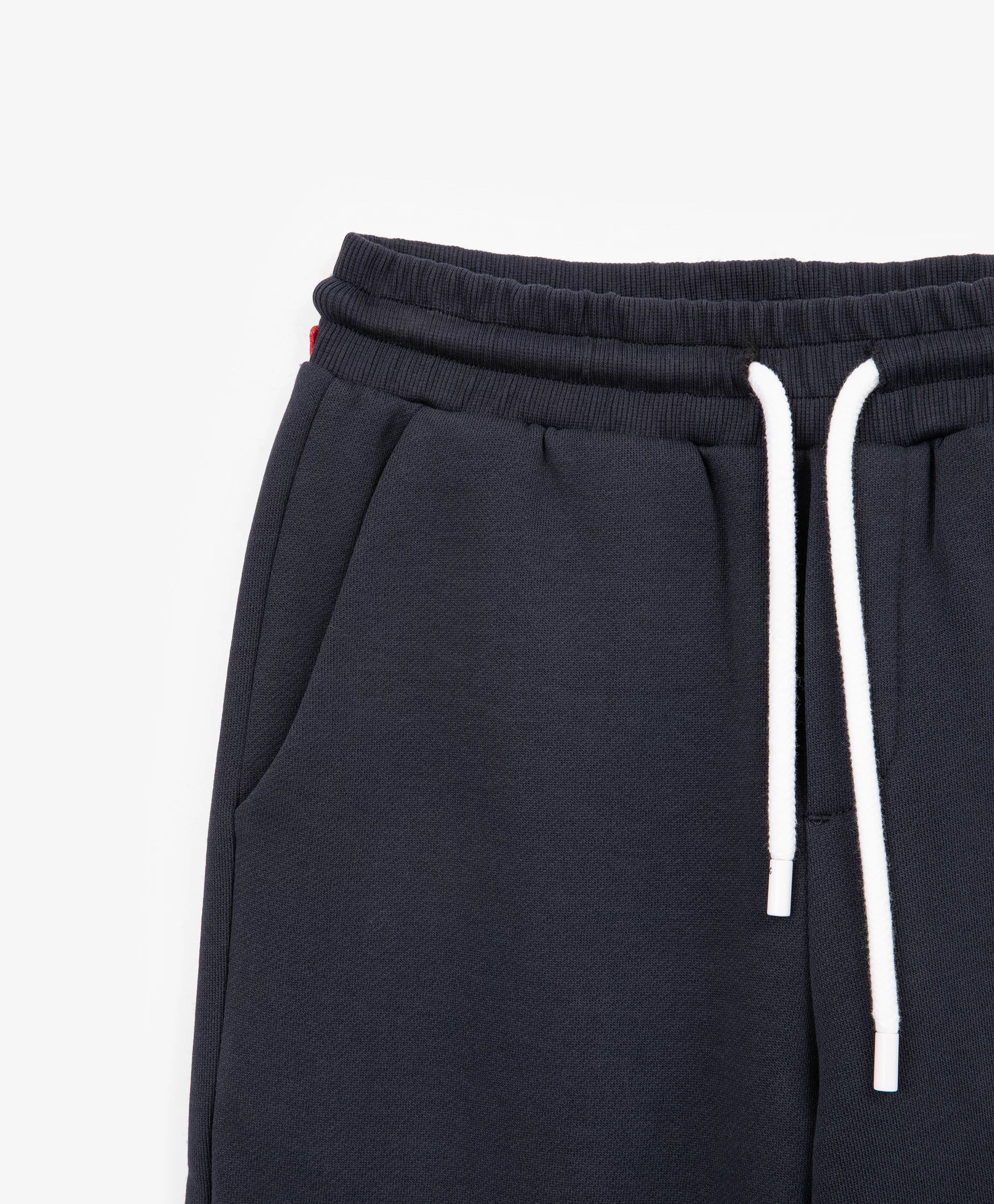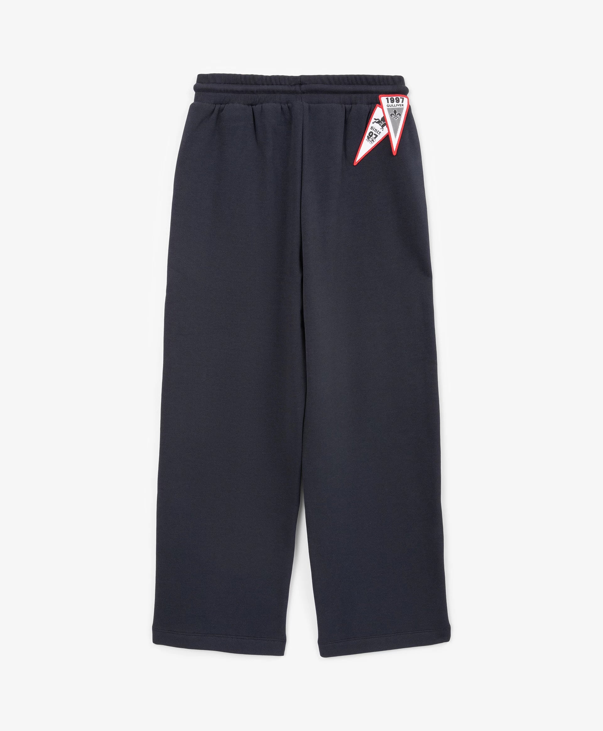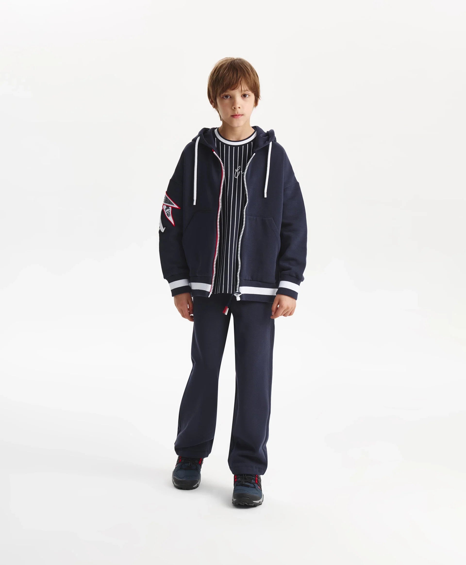 Сините панталони с права свободна кройка от памучен футер с вътрешен мъх са must-have в практичния есенно-зимен гардероб. Ластичен колан с връзки за комфортна посадка, странични коси джобове. Отзад има малка нашивка в стил колекцията Gulliver „Колеж“.